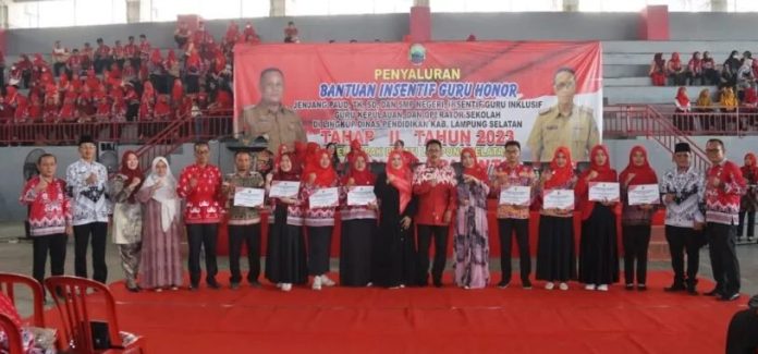Berlangsung di GOR Way Handak, kegiatan tersebut dihadiri oleh para guru honor dari tingkat PAUD sampai SMP se Lampung Selatan.