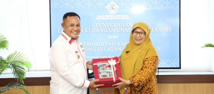 Lampung Selatan, Wartagraha.com – Bupati Lampung Selatan H. Nanang Ermanto menyerahkan Laporan Keuangan Pemerintah Daerah (LKPD) Unaudited Tahun Anggaran 2022 Pemerintah Kabupaten Lampung Selatan kepada Badan Pemeriksa Keuangan Republik Indonesia (BPK RI) Perwakilan Provinsi Lampung.