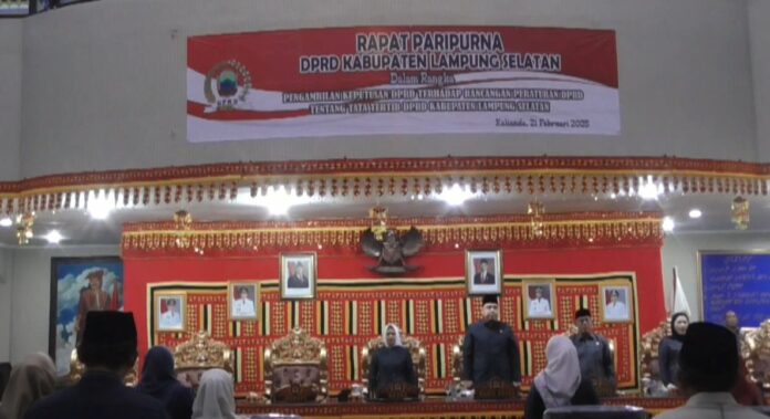Kalianda, Dewan Perwakilan Rakyat Daerah DPRD Lampung Selatan menggelar rapat paripurna dalam rangka pengambilan keputusan terhadap rancangan peraturan tata tertib DPRD
