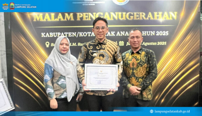 Jakarta – Kabupaten Lampung Selatan kembali mencatat prestasi membanggakan di ajang Kabupaten/Kota Layak Anak (KLA) Tahun 2025. Meski mempertahankan peringkat kategori Nindya seperti tahun sebelumnya, skor Verifikasi Administrasi Lampung Selatan naik dari 763,37 pada 2023 menjadi 764,92 tahun ini.