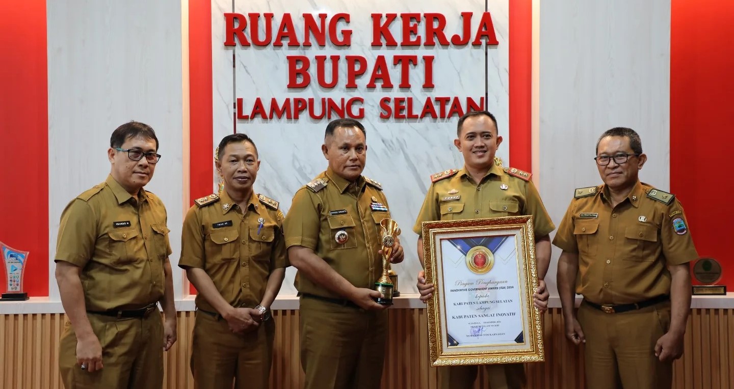 Kalianda – Pemerintah Kabupaten (Pemkab) Lampung Selatan berhasil mendapatkan penghargaan Innovative Government Award (IGA) 2024, dari Badan Strategi Kebijakan Dalam Negeri (BSKDN), Kementrian Dalam Negeri (Kemendagri) sebagai Kabupaten Sangat Inovatif.