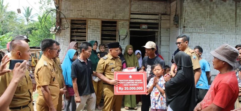 Lampung Selatan, Wartagraha.com – Bupati Lampung Selatan H. Nanang Ermanto bersama bersama jajaran Pejabat Pemerintah Daerah setempat menyambangi rumah warga Kecamatan Kalianda yang roboh terkena bencana angin kencang pada Senin, 11 Desember 2023 lalu.